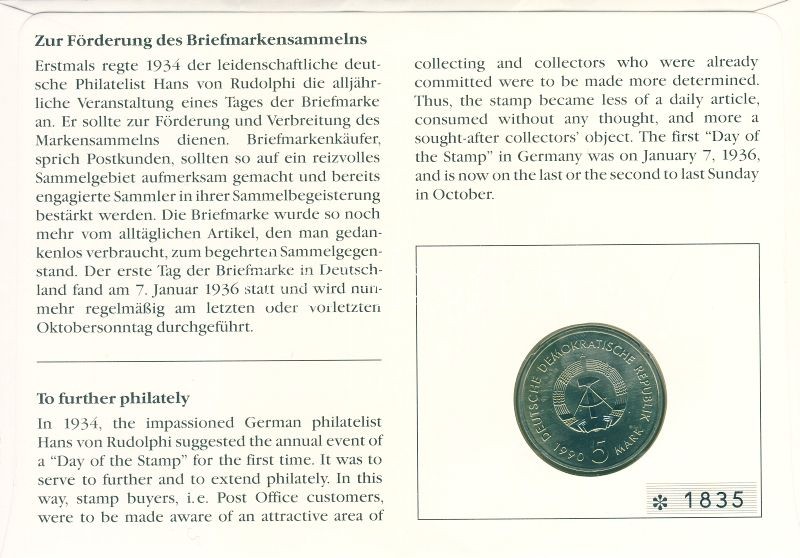 Beschreibung: NDK 1990. 5M "500 éves a posta" érmés, bélyeges borítékon T:1