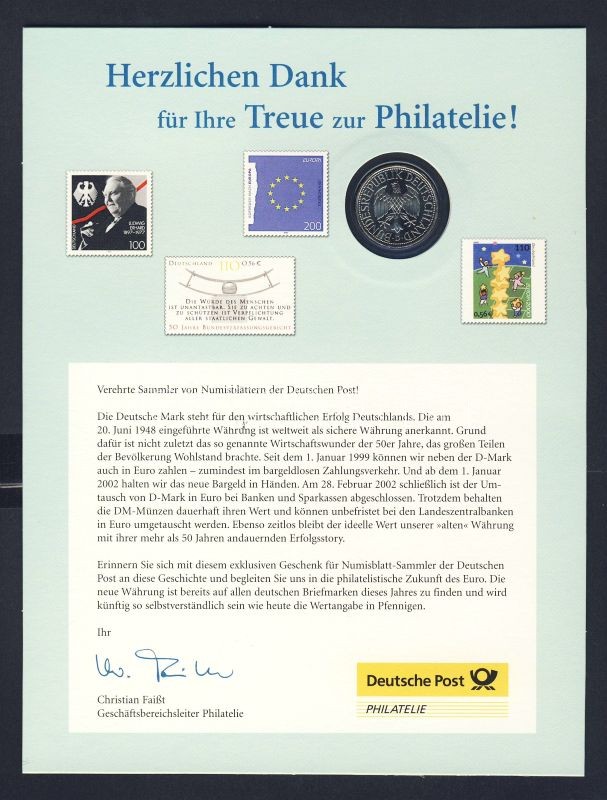 Beschreibung: NSZK 1992. 1M érmés emléklapon, bélyeggel T:1