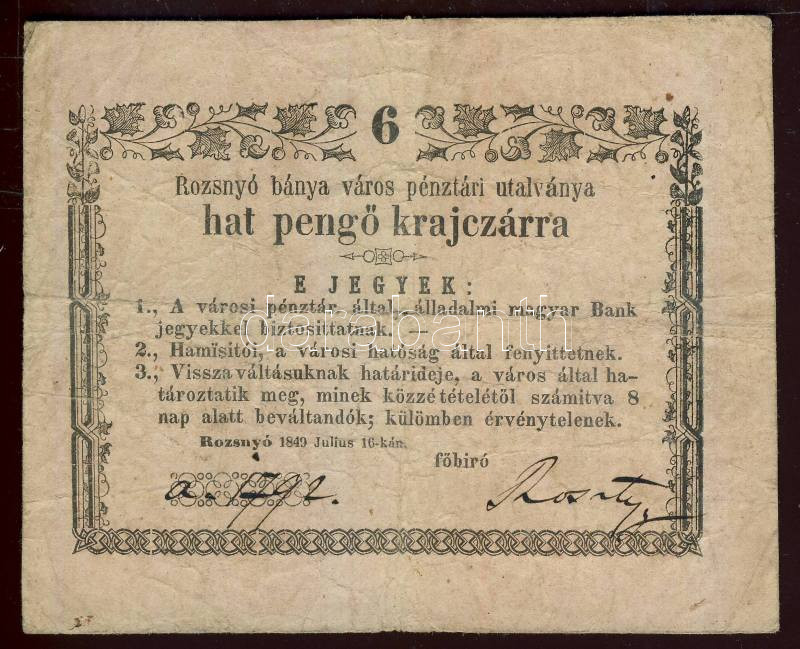 Beschreibung: 1849. Rozsnyó 6kr T:III