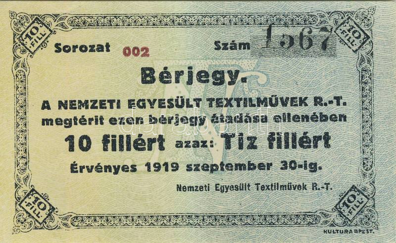 Nemzeti Egyesült Textilművek R.T. 1919. 10f sorozatszám:fekete, 6mm T:... https://www.darabanth.com/de/103-Fernauktion/103.0/Numismatik/~40005/Nemzeti-Egyesult-Textilmuvek-RT-1919-10f-sorozatszamfekete-6mm-TI~II251938