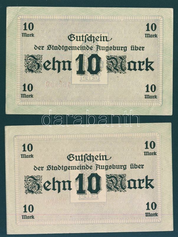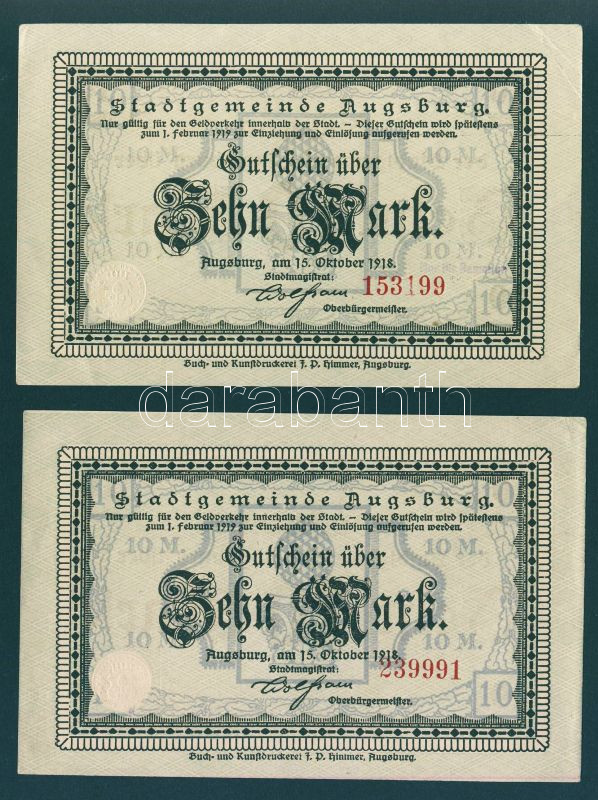 Német Birodalom/Császárság/Augsburg 1918.10.15. 10M (2x) az egyik hiva... https://www.darabanth.com/de/103-Fernauktion/103.0/Numismatik/~40006/Nemet-BirodalomCsaszarsagAugsburg-19181015-10M-2x-az-egyik-hivatalos-ervenytelenitess~II250778