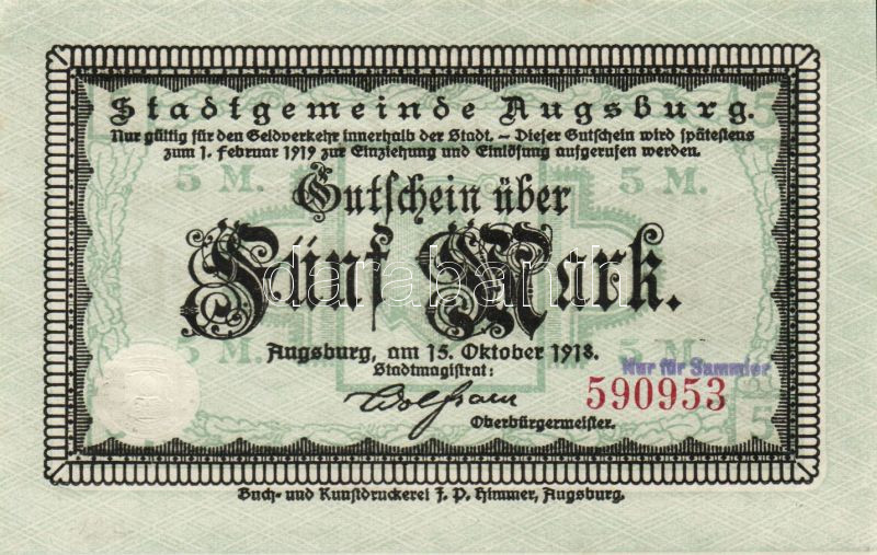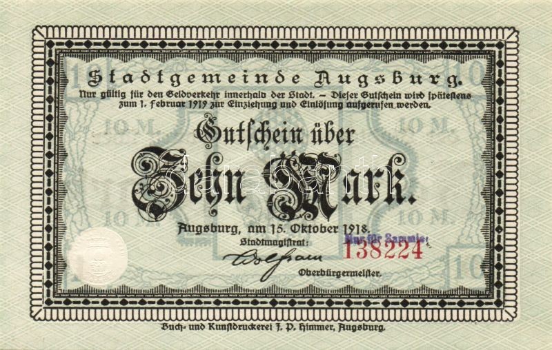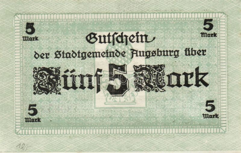 Beschreibung: Német Birodalom/Császárság/Augsburg 1918.10.15. 5M, 10M hivatalos érvénytelenítéssel T:I