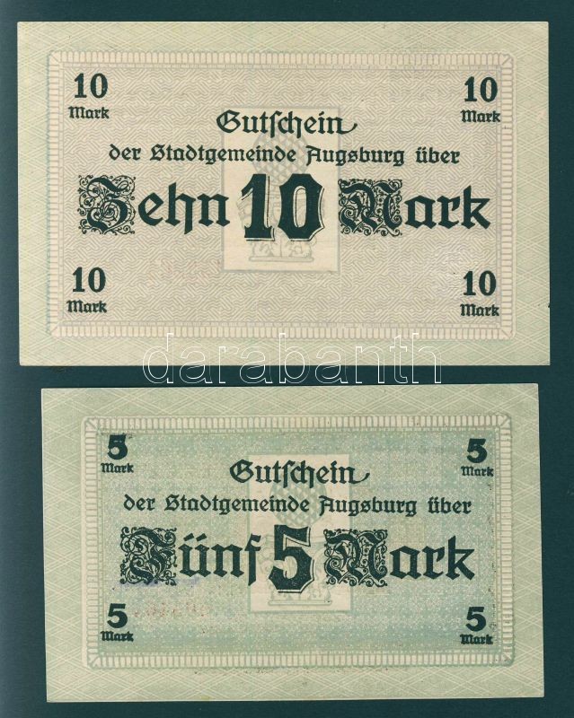 Német Birodalom/Császárság/Augsburg 1918.10.15. 5M, 10M hivatalos érvé... https://www.darabanth.com/de/103-Fernauktion/103.0/Numismatik/~40006/Nemet-BirodalomCsaszarsagAugsburg-19181015-5M-10M-hivatalos-ervenytelenitessel-TI~II250756