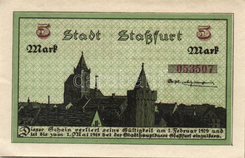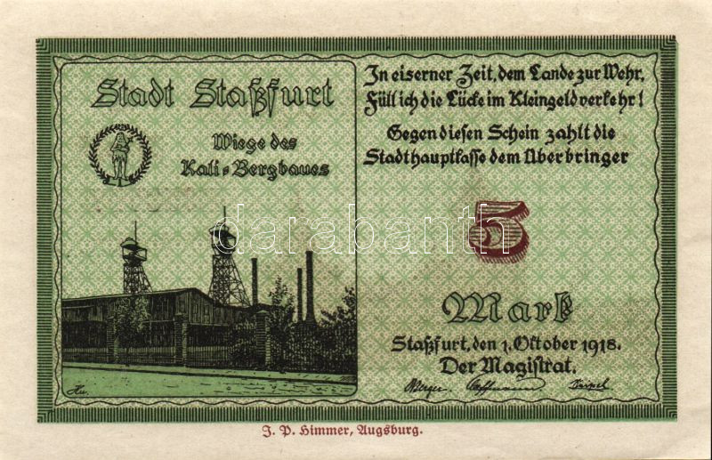 Beschreibung: Német Birodalom/Császárság/Staßfurt 1918.10.1. 5M (2x) egymásutáni sorszámmal T:I,I-