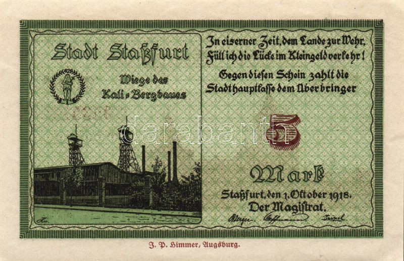 Német Birodalom/Császárság/Staßfurt 1918.10.1. 5M (3x) egymásutáni sor... https://www.darabanth.com/de/103-Fernauktion/103.0/Numismatik/~40006/Nemet-BirodalomCsaszarsagStaC39Ffurt-1918101-5M-3x-egymasutani-sorszammal-TI-I-~II250922
