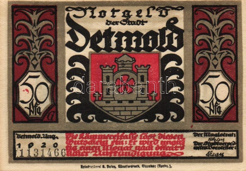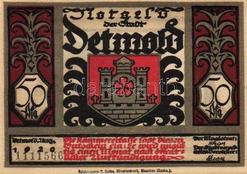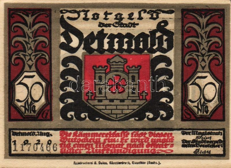 Német Birodalom/Weimari Köztársaság/ Detmold 1920. 50Pf(10x) 10klf db,... https://www.darabanth.com/de/103-Fernauktion/103.0/Numismatik/~40006/Nemet-BirodalomWeimari-Koztarsasag-Detmold-1920-50Pf10x-10klf-db-teljes-sor-TI~II248091