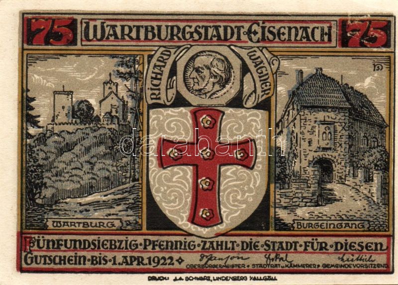 Beschreibung: Német Birodalom/Weimari Köztársaság/ Eisenach 1922. 25Pf(2x) + 50Pf(2x) + 75Pf(2x) 6klf db, teljes sor T:I