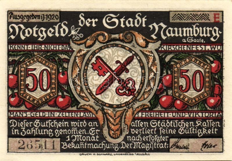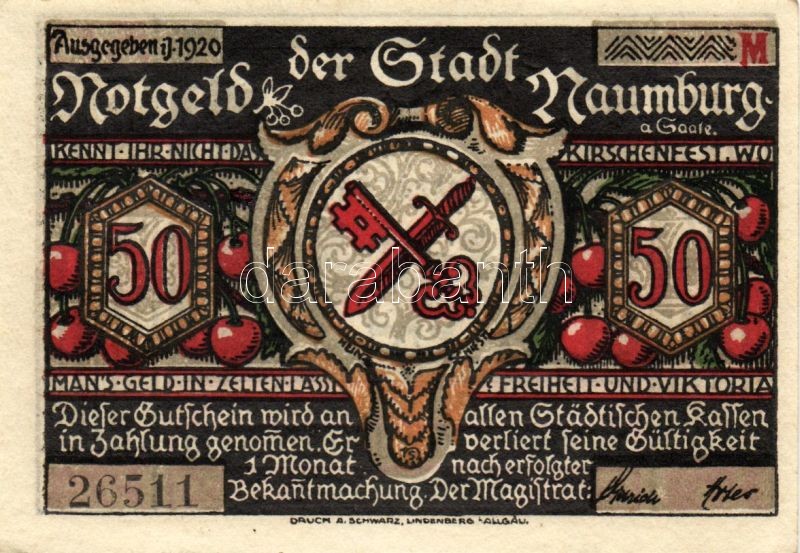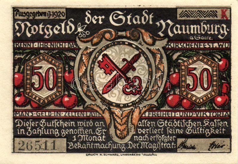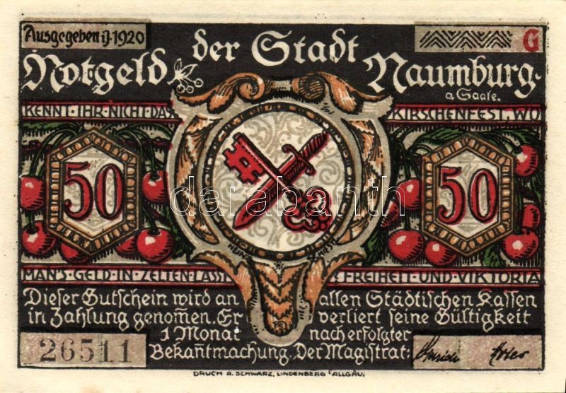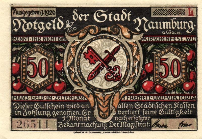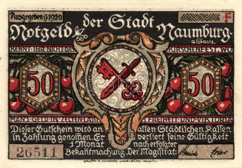 Német Birodalom/Weimari Köztársaság/ Naumburg 1920. 50Pf(12x) 12klf db... https://www.darabanth.com/de/103-Fernauktion/103.0/Numismatik/~40006/Nemet-BirodalomWeimari-Koztarsasag-Naumburg-1920-50Pf12x-12klf-db-teljes-sor-TI~II248094