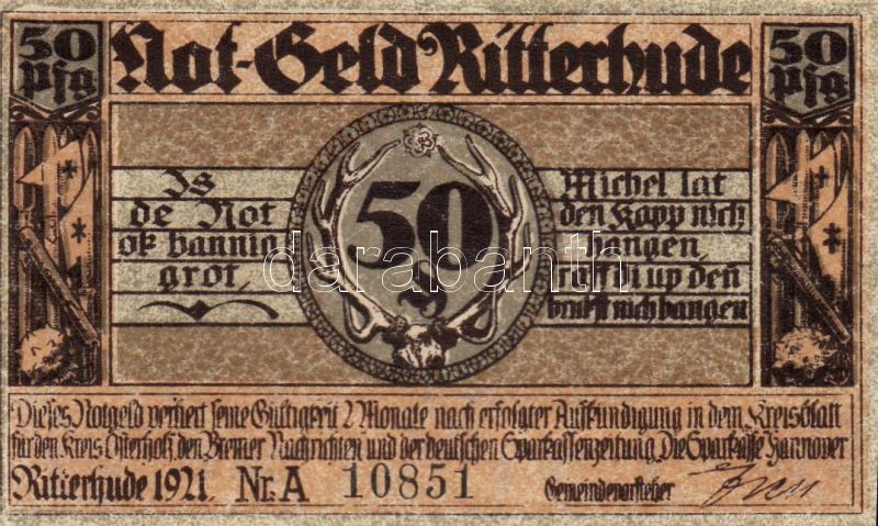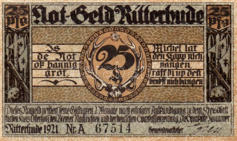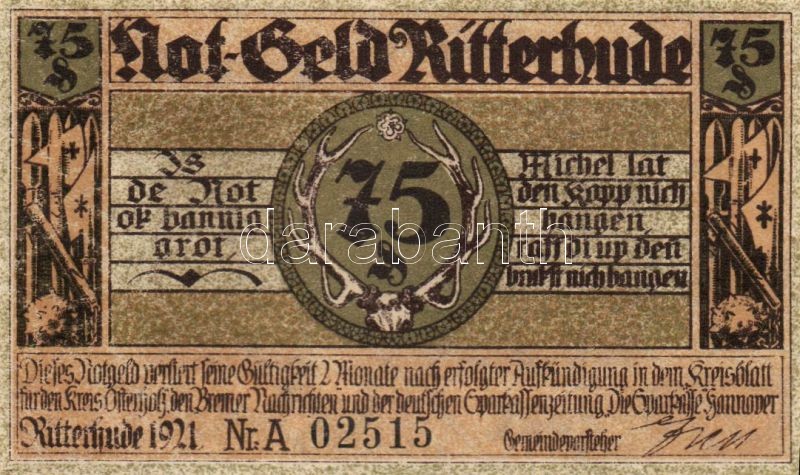 Német Birodalom/Weimari Köztársaság/ Ritterhude 1921. 25Pf + 50Pf + 75... https://www.darabanth.com/de/103-Fernauktion/103.0/Numismatik/~40006/Nemet-BirodalomWeimari-Koztarsasag-Ritterhude-1921-25Pf-plus-50Pf-plus-75Pf-3klf-db-teljes-sor-TI~II248977