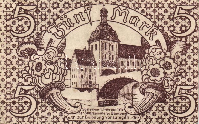 Német Birodalom/Weimari Köztársaság/Bamberg 1918. 5M fekete sorszámmal... https://www.darabanth.com/de/103-Fernauktion/103.0/Numismatik/~40006/Nemet-BirodalomWeimari-KoztarsasagBamberg-1918-5M-fekete-sorszammal-TIIIII~II249885