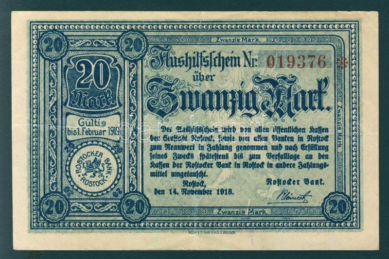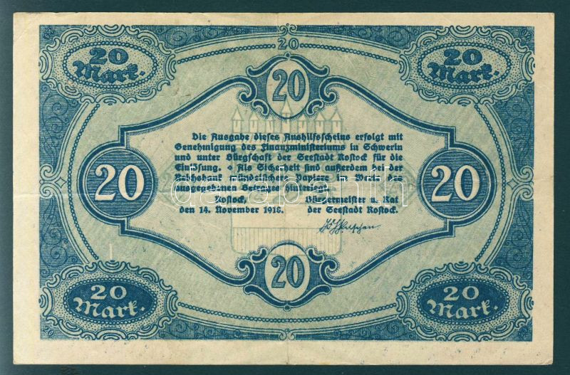 Német Birodalom/Weimari Köztársaság/Rostock 1918.11.14. 20M T:II https://www.darabanth.com/de/103-Fernauktion/103.0/Numismatik/~40006/Nemet-BirodalomWeimari-KoztarsasagRostock-19181114-20M-TII~II250807