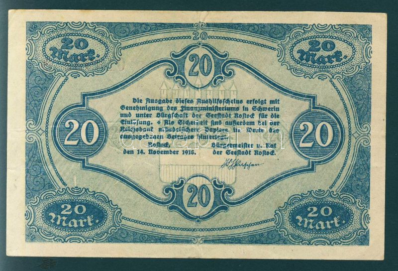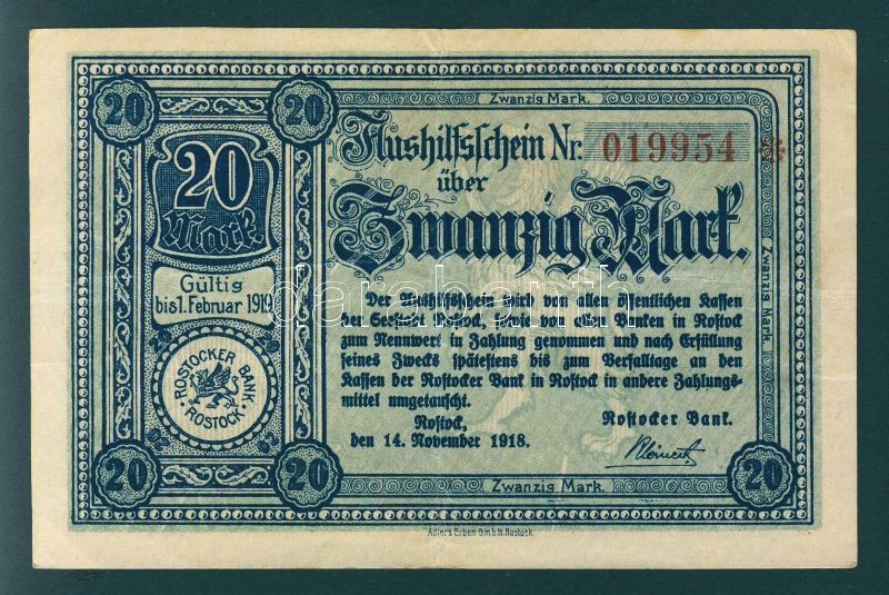 Német Birodalom/Weimari Köztársaság/Rostock 1918.11.14. 20M T:II https://www.darabanth.com/de/103-Fernauktion/103.0/Numismatik/~40006/Nemet-BirodalomWeimari-KoztarsasagRostock-19181114-20M-TII~II250810