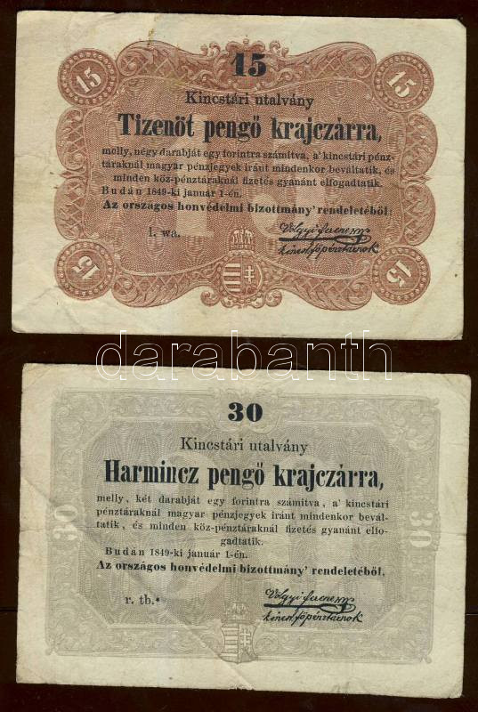 Beschreibung: 1849. 15kr + 30kr "Kossuth-bankó" T:II/III