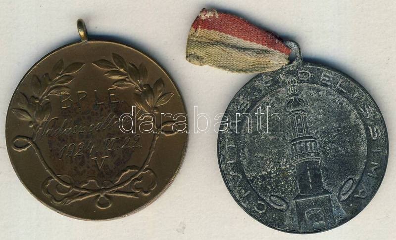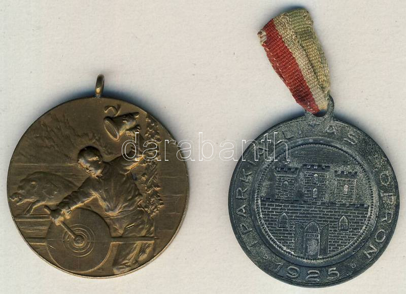 Beschreibung: 1924. "B.P.L.E.-Vadászcéltábla" Br díjérem T:2 + 1925. "Iparkiállítás-Sopron" ffém emlékérem, szalaggal T:2-/3+