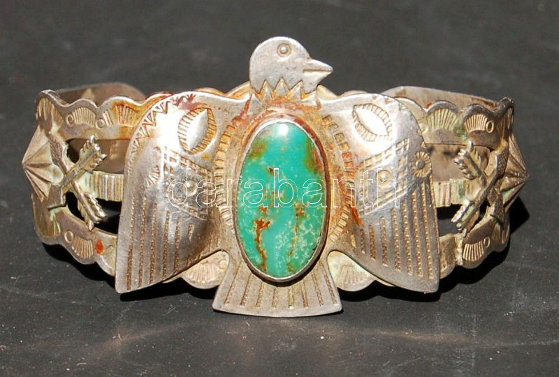 Dekoratív mexikói ezüst karperec féldrágakővel, Ag 33,08g T:repedt, de... https://www.darabanth.com/de/103-Fernauktion/103.0/Numismatik/~40014/Dekorativ-mexikoi-ezust-karperec-feldragakovel-Ag-33-08g-Trepedt-de-javithato~II251641