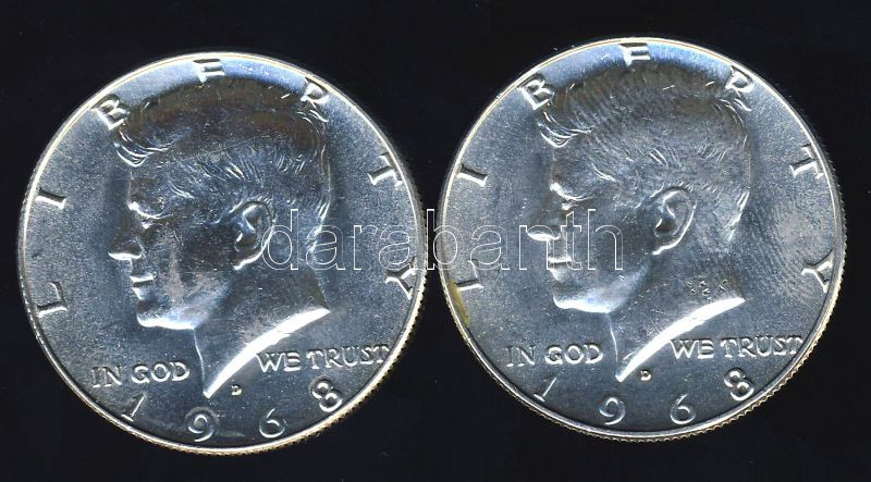 USA 1968D 1/2$(2x) Ag "Kennedy" T:1/2+ https://www.darabanth.com/de/103-Fernauktion/103.0/Numismatik/~40015/USA-1968D-12USD2x-Ag-Kennedy-T12plus~II252036
