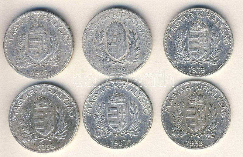 1926-39. 1P Ag (6x) T:2,3 https://www.darabanth.com/de/103-Fernauktion/103.0/Numismatik/~40016/1926-39-1P-Ag-6x-T2-3~II251435