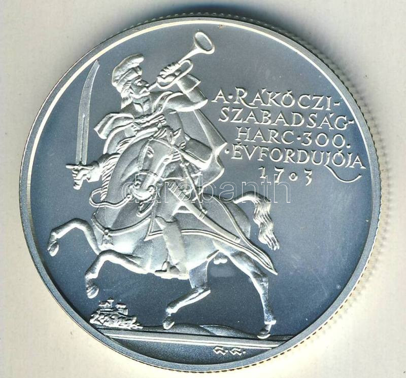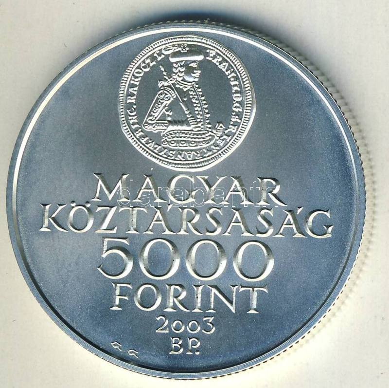 2003. 5000Ft Ag "Rákóczi szabadságharc évfordulója" T:BU Csak 3000db! https://www.darabanth.com/de/103-Fernauktion/103.0/Numismatik/~40016/2003-5000Ft-Ag-Rakoczi-szabadsagharc-evforduloja-TBU-Csak-3000db~II252104