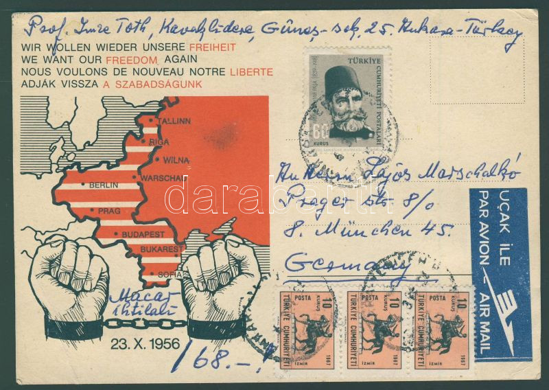 1968 Adják vissza a szabadságunk! 23.10.1956. feliratú képes levelezől... https://www.darabanth.com/de/103-Fernauktion/103.0/Philatelie/~254/1968-Adjak-vissza-a-szabadsagunk-23101956-feliratu-kepes-levelezolap-Munchenbe~II249392