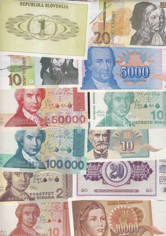Beschreibung: Balkán Államok / Jugoszlávia, Horvátország, Bosznia-Hercegovina, Makedónia, Szlovénia, Szerbia 48 klf bankjegy T:I