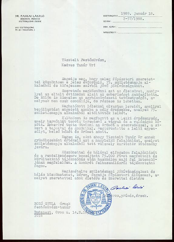 1989 Paskai László hercegprímás aláírása Bozó Gyulának szoló köszönőle... https://www.darabanth.com/de/105-Fernauktion/105.0/Andere-Sammelgebiete/~100103/1989-Paskai-Laszlo-hercegprimas-alairasa-Bozo-Gyulanak-szolo-koszonolevelen~II249893