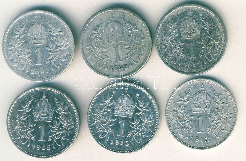 Beschreibung: Ausztria 1893-1915. 1K Ag (6x) T:2,2/3,3