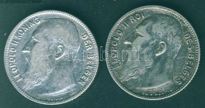 Belgium 1909. 1Fr Ag + 1FrAg párban "flamand + vallon variáns" T:3/3+ https://www.darabanth.com/de/105-Fernauktion/105.0/Numismatik/~500015/Belgium-1909-1Fr-Ag-plus-1FrAg-parban-flamand-plus-vallon-varians-T33plus~II258954