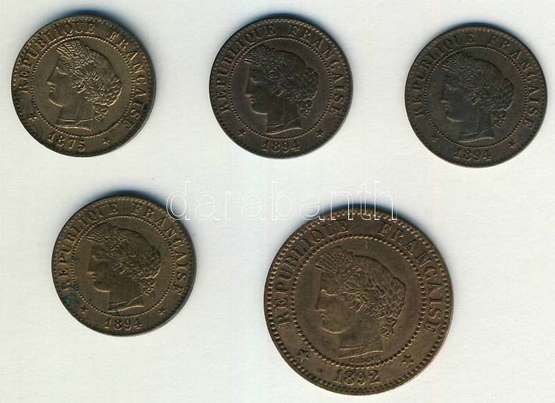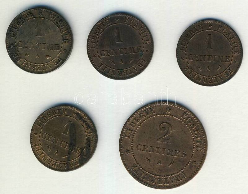 Franciaország 1875-94. 1c (4x), 2c (1x) T:3+,3 https://www.darabanth.com/de/105-Fernauktion/105.0/Numismatik/~500015/Franciaorszag-1875-94-1c-4x-2c-1x-T3plus-3~II258284
