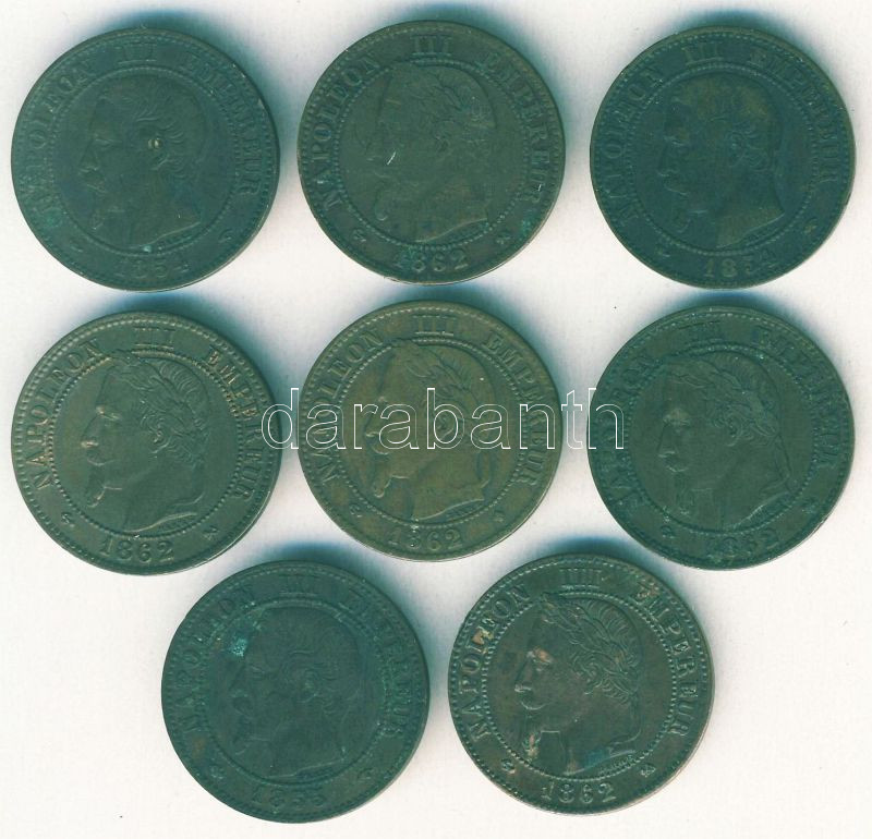 Beschreibung: Franciaország/Második Császárság 1854-62. 2c III.Napóleon (8x), benne klf évszámok, ill. verdejelek T:3+,3