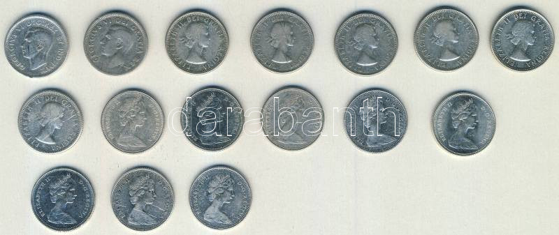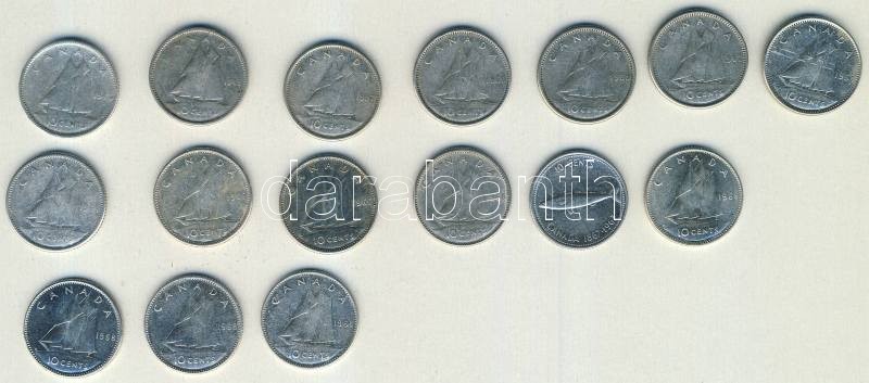 Kanada 1947-1968. 10c Ag 3 klf típusban 9klf ,összesen 16db T:1,2,3 https://www.darabanth.com/de/105-Fernauktion/105.0/Numismatik/~500015/Kanada-1947-1968-10c-Ag-3-klf-tipusban-9klf-osszesen-16db-T1-2-3~II257778