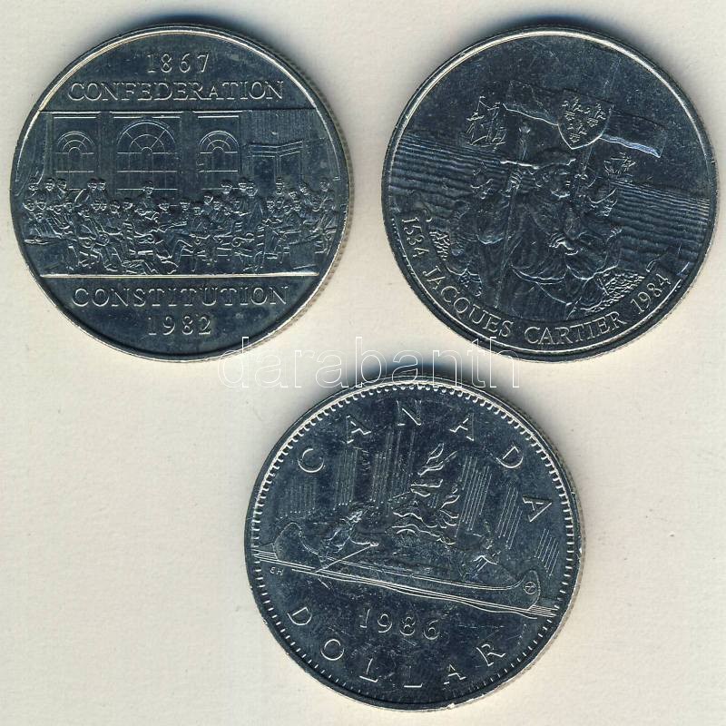 Kanada 1982-86. 1$ 3klf motívummal "Kenu, Alkotmány, Cartier" T:2,3 https://www.darabanth.com/de/105-Fernauktion/105.0/Numismatik/~500015/Kanada-1982-86-1USD-3klf-motivummal-Kenu-Alkotmany-Cartier-T2-3~II255953