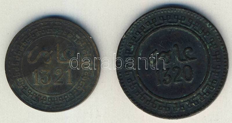 Marokkó 1903-1904. 5M, 10M T:3 https://www.darabanth.com/de/105-Fernauktion/105.0/Numismatik/~500015/Marokko-1903-1904-5M-10M-T3~II258252
