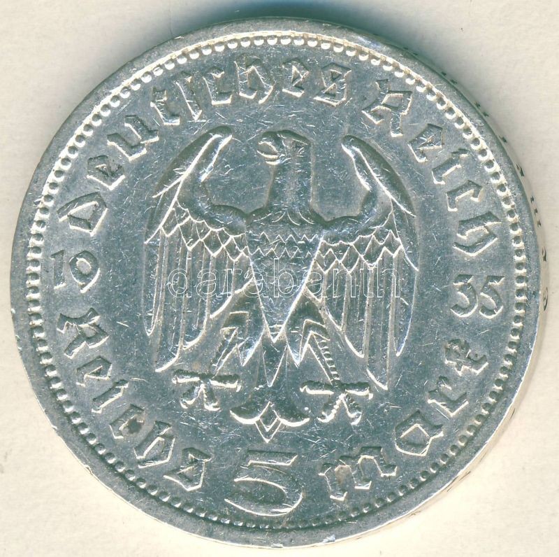Német 3. Birodalom 1935A 5M Ag "Hindenburg" T:3 ph. https://www.darabanth.com/de/105-Fernauktion/105.0/Numismatik/~500015/Nemet-3-Birodalom-1935A-5M-Ag-Hindenburg-T3-ph~II256434
