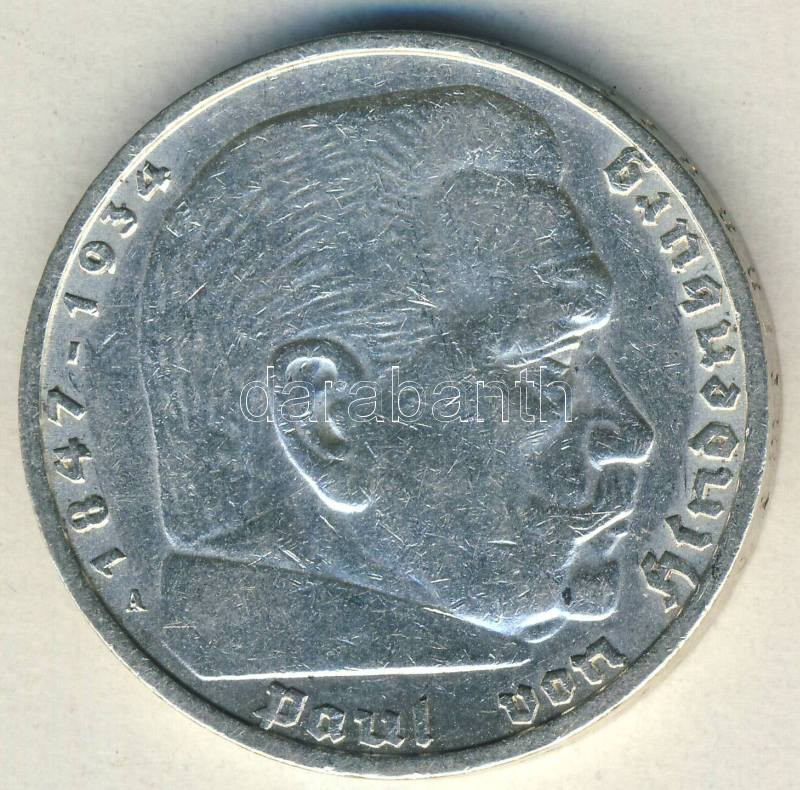 Beschreibung: Német 3. Birodalom 1936A 5M Ag "Hindenburg" nagy h.k.-tel T:2-/3