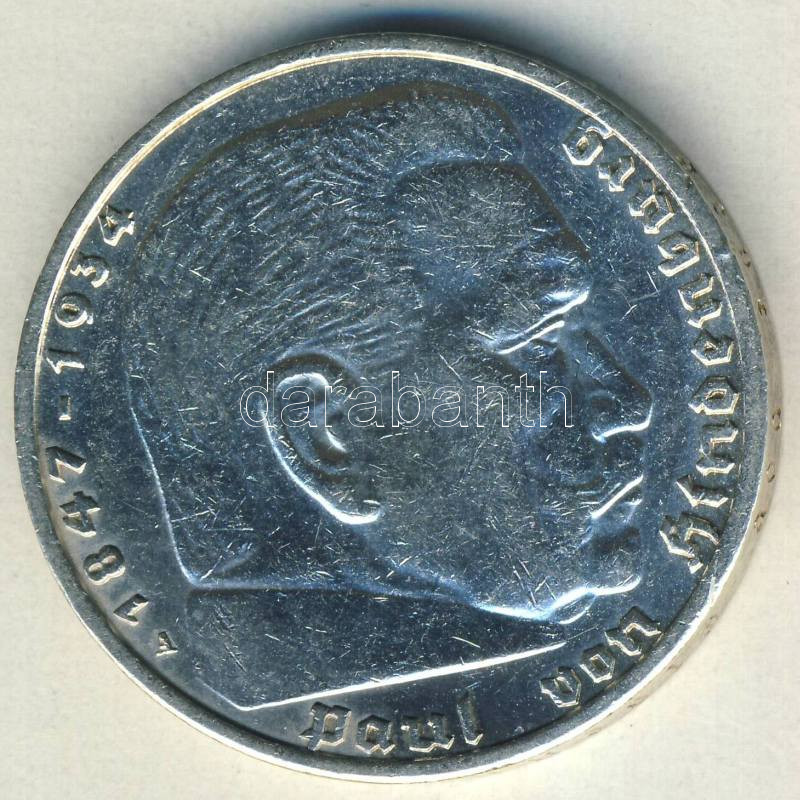 Beschreibung: Német 3. Birodalom 1938A 5M Ag "Hindenburg" nagy h.k.-tel T:2/3