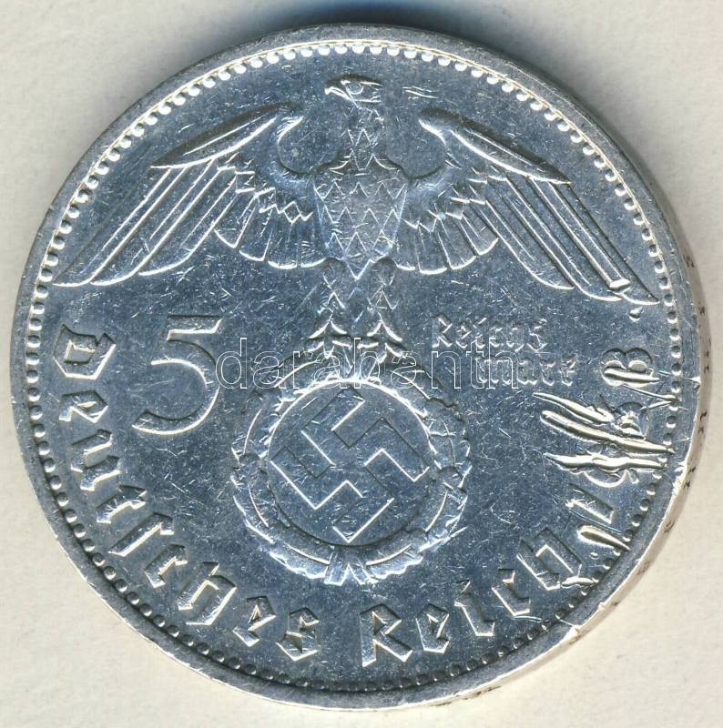 Német 3. Birodalom 1938E 5M Ag "Hindenburg" h.k.-tel T:2-/3 k. ph. https://www.darabanth.com/de/105-Fernauktion/105.0/Numismatik/~500015/Nemet-3-Birodalom-1938E-5M-Ag-Hindenburg-hk-tel-T2-3-k-ph~II258616