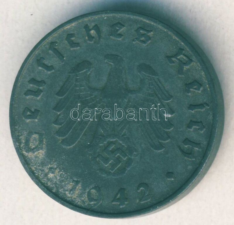 Német 3. Birodalom 1942B 10Pf Zn T:3+ https://www.darabanth.com/de/105-Fernauktion/105.0/Numismatik/~500015/Nemet-3-Birodalom-1942B-10Pf-Zn-T3plus~II258933