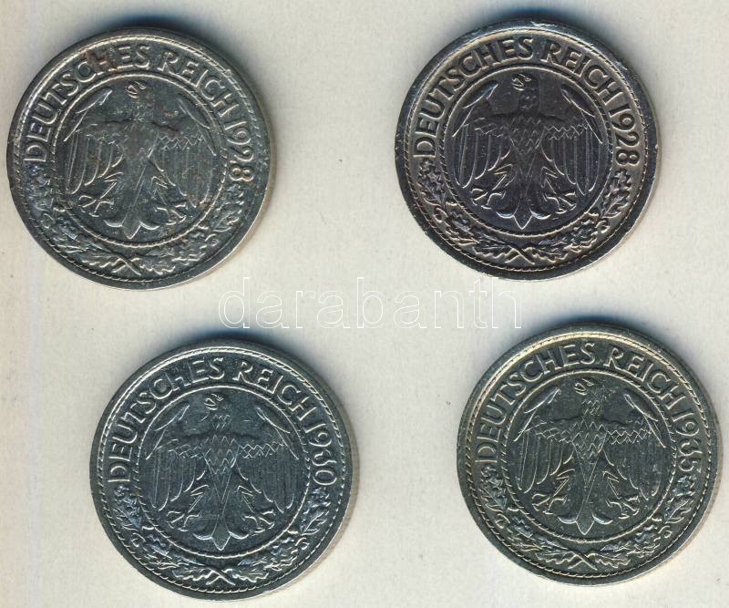 Beschreibung: Német Birodalom / Weimari Köztársaság 50Rpf 1928A, 1928J, 1930A, 1935A összesen 4klf T:3