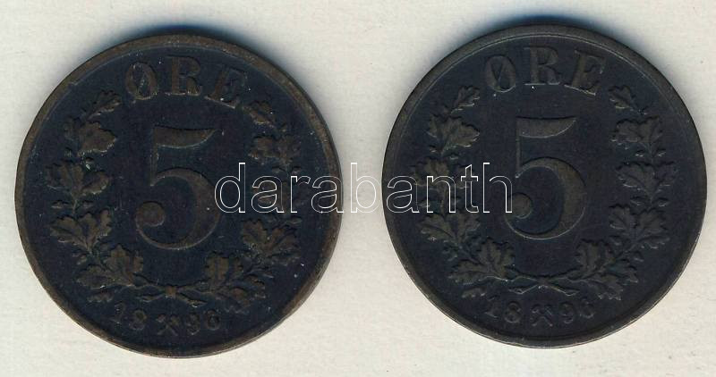 Norvégia 1896. 5ö (2x) T:3 https://www.darabanth.com/de/105-Fernauktion/105.0/Numismatik/~500015/Norvegia-1896-5o-2x-T3~II255809