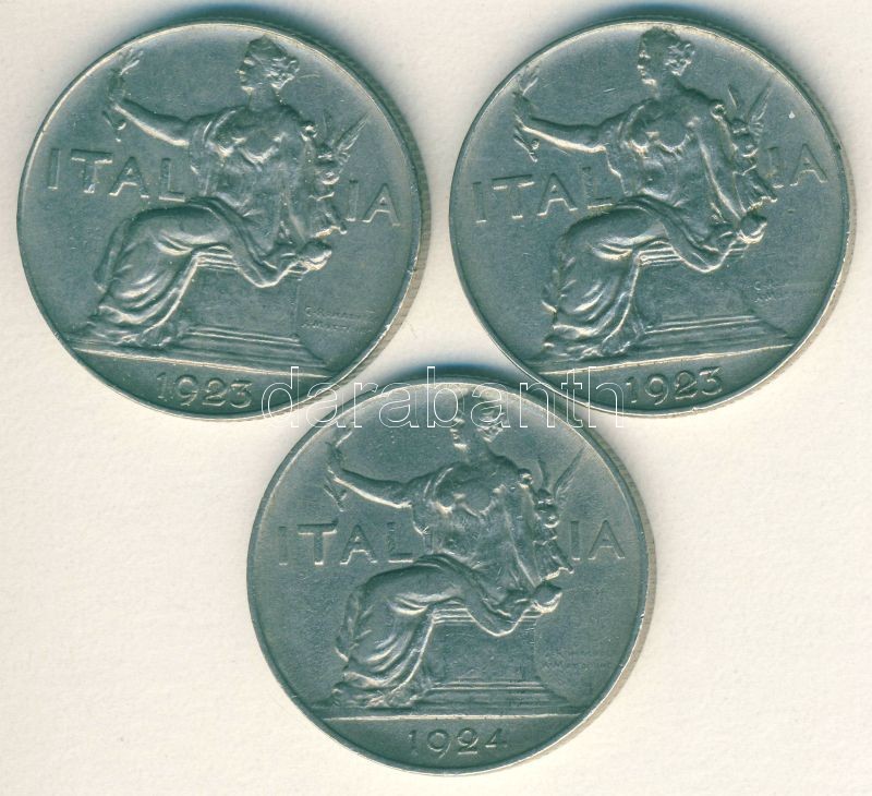 Olaszország 1923-24. 1L (3x) III.Viktor Emánuel T:3 https://www.darabanth.com/de/105-Fernauktion/105.0/Numismatik/~500015/Olaszorszag-1923-24-1L-3x-IIIViktor-Emanuel-T3~II258270