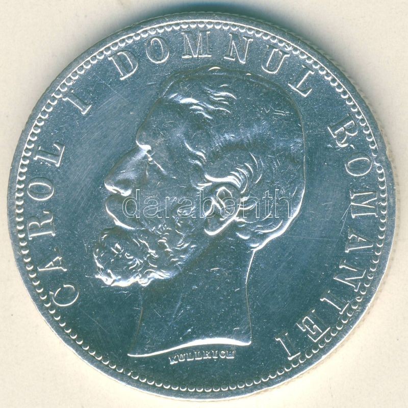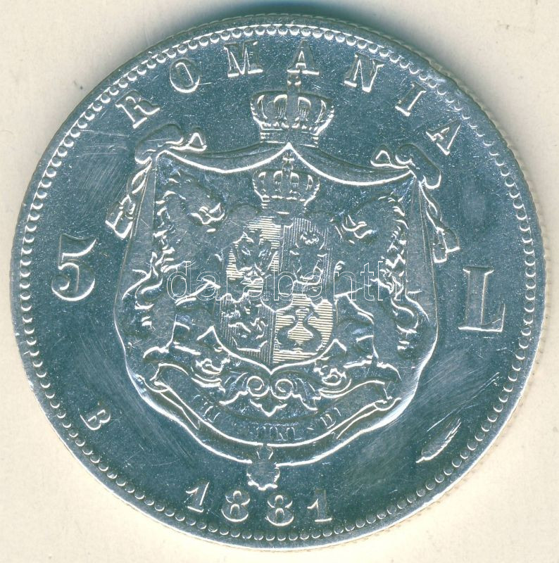 Beschreibung: Románia 1881B 5L Ag "recés perem" I.Károly T:3 kis ph.