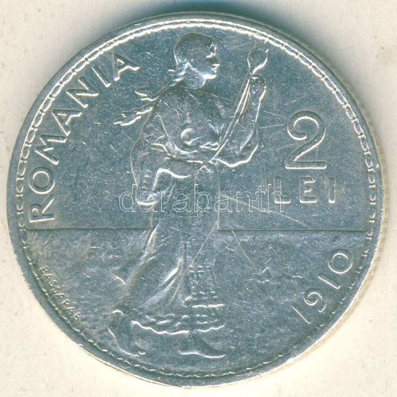 Románia 1910. 2L Ag T:3 ph. https://www.darabanth.com/de/105-Fernauktion/105.0/Numismatik/~500015/Romania-1910-2L-Ag-T3-ph~II256685