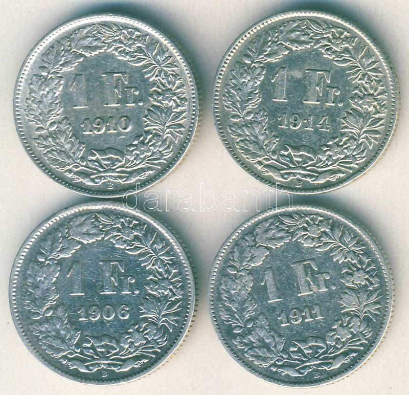 Beschreibung: Svájc 1906-1910,1911,1914. 1Fr Ag 4klf db T:2/3+