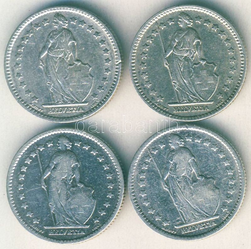 Svájc 1906-1910,1911,1914. 1Fr Ag 4klf db T:2/3+ https://www.darabanth.com/de/105-Fernauktion/105.0/Numismatik/~500015/Svajc-1906-1910-1911-1914-1Fr-Ag-4klf-db-T23plus~II258929