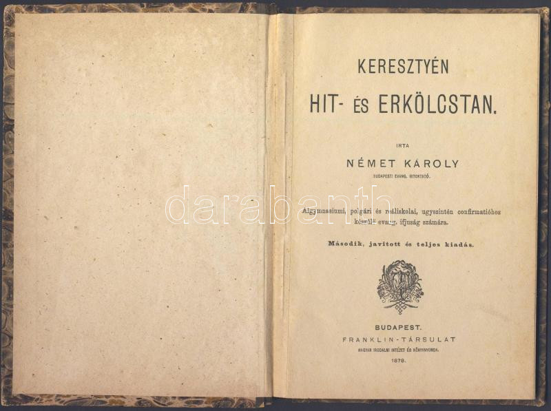 1878 Német Károly: Keresztyén hit és erkölcstan, Budapest, Franklin tá... https://www.darabanth.com/de/106-Fernauktion/106.0/Andere-Sammelgebiete/~288/1878-Nemet-Karoly-Keresztyen-hit-es-erkolcstan-Budapest-Franklin-tarsulat~II259370