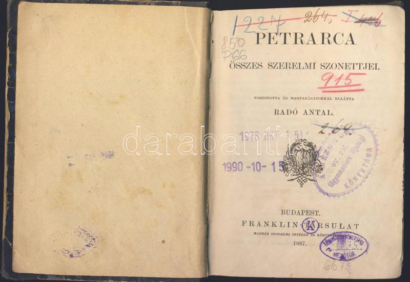 1887 Radó Antal: Petrarca, Budapest, Franklin társulat https://www.darabanth.com/de/106-Fernauktion/106.0/Andere-Sammelgebiete/~288/1887-Rado-Antal-Petrarca-Budapest-Franklin-tarsulat~II259374