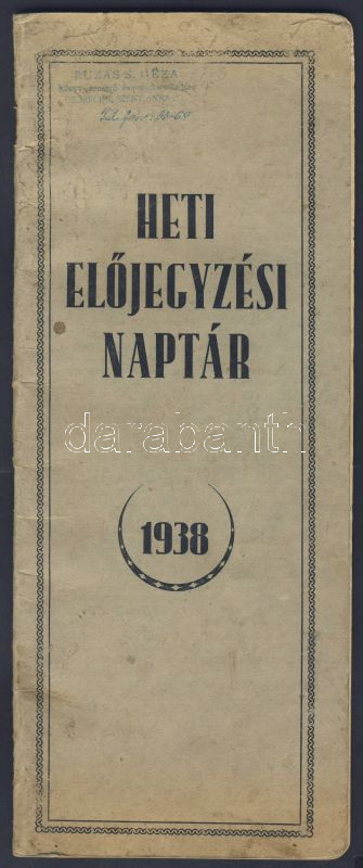 1938 Heti előjegyzési naptár (üres) benne csillagászati jegyzetek és p... https://www.darabanth.com/de/106-Fernauktion/106.0/Andere-Sammelgebiete/~288/1938-Heti-elojegyzesi-naptar-ures-benne-csillagaszati-jegyzetek-es-postai-dijszabas~II205588