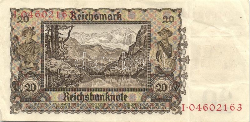 Beschreibung: NDK 1948. 20DM "Kupon-bankjegy" (kupon ráragasztva a 20RM 1939-es kiadású bankjegyre) (2x) kevésugrású sorszámokkal T:II-
