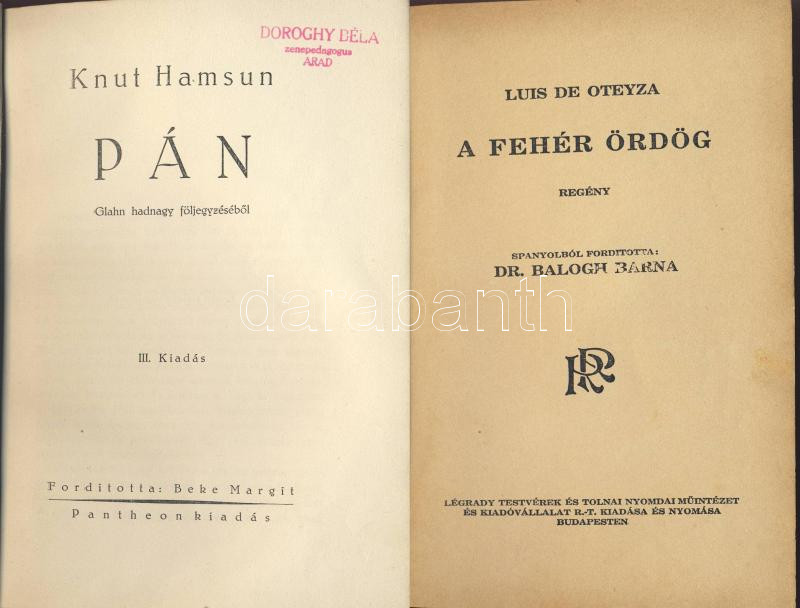 cca 1920 Luis De Oteyza: A fehér ördög regénye (Légrády testvérek kiad... https://www.darabanth.com/de/107-Fernauktion/107.0/Andere-Sammelgebiete/~305/cca-1920-Luis-De-Oteyza-A-feher-ordog-regenye-Legrady-testverek-kiadasa-es-Knut-Hamsun-~II262336