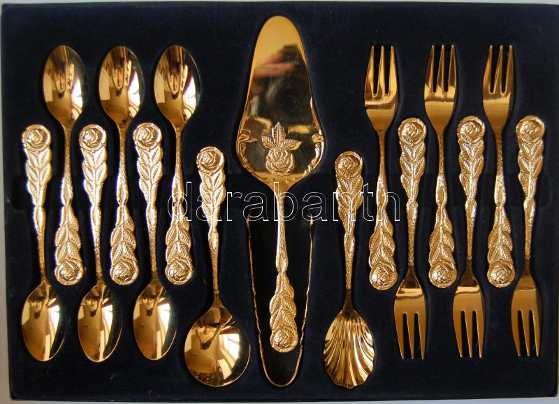 XX. század II. fele 24 karátos aranyozott 16 részes desszertes készlet https://www.darabanth.com/de/107-Fernauktion/107.0/Andere-Sammelgebiete/~306/XX-szazad-II-fele-24-karatos-aranyozott-16-reszes-desszertes-keszlet~II262186